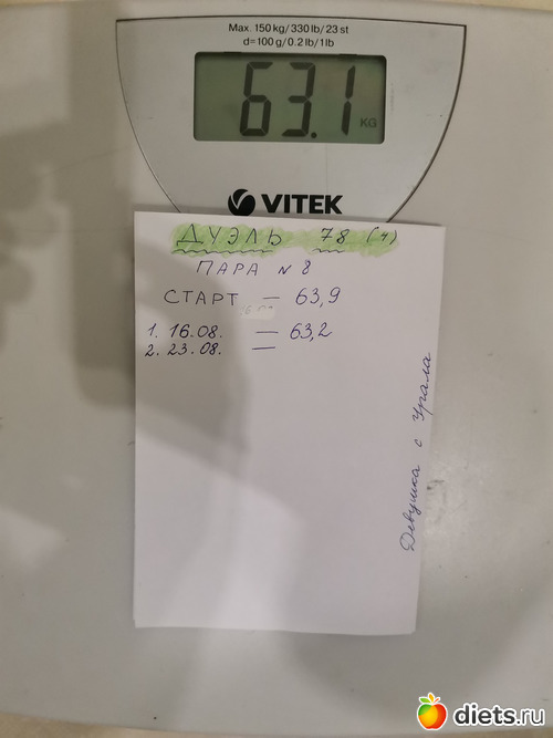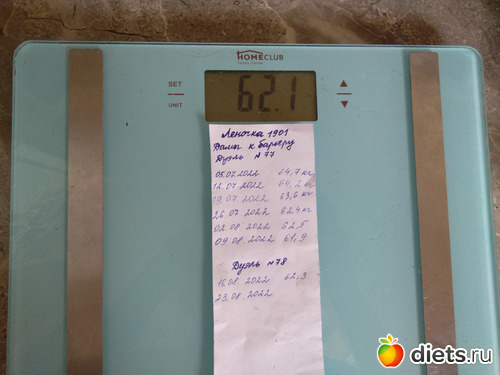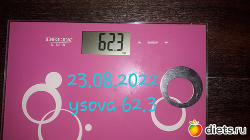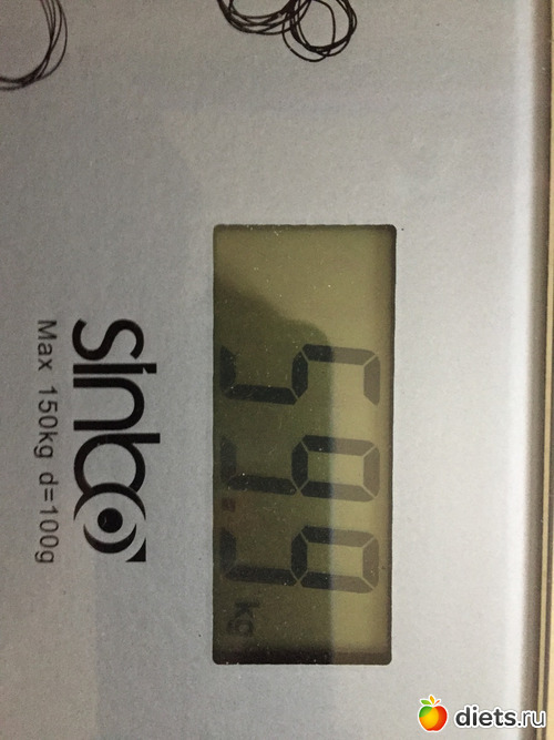 Вес 60 кг. За неделю минус 1 кг. Радует, двигаюсь дальше...