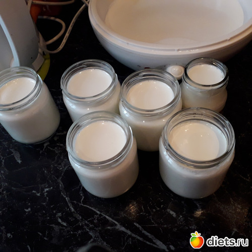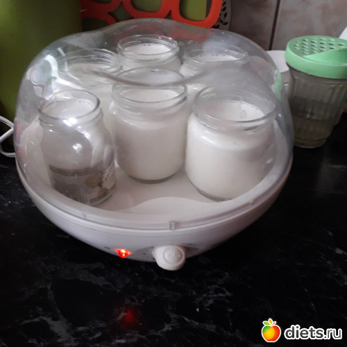 Трогать и передвигать во время приготовления йогуртницу нельзя! Я обычно ставлю -на ночь. По окончании приготовления-ставим в холодильник.