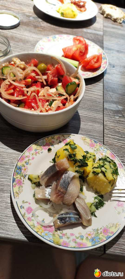Ужин: картошка + селедка + салат