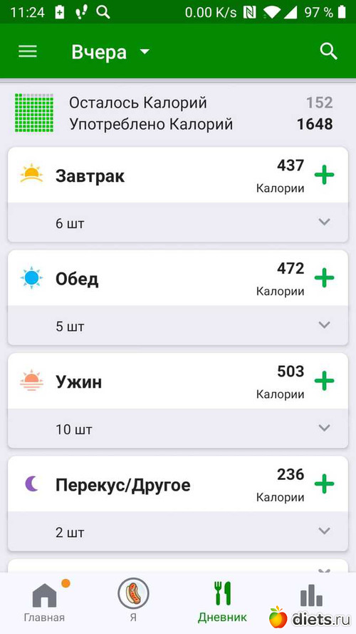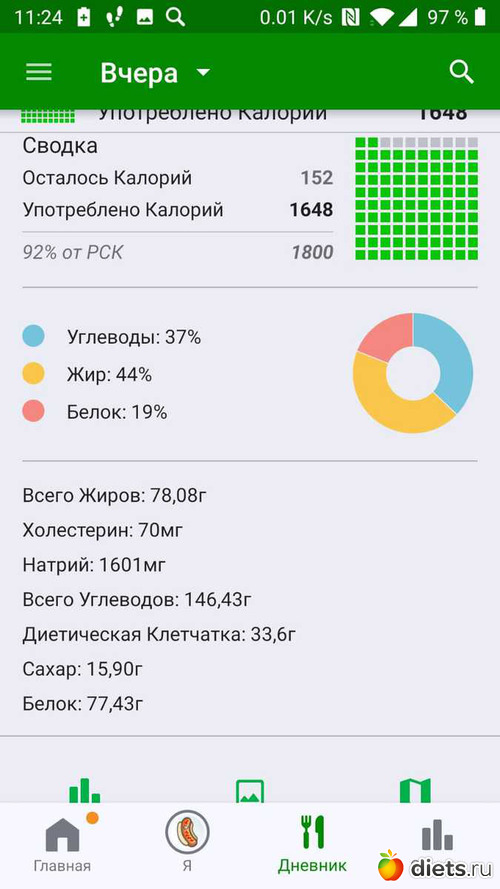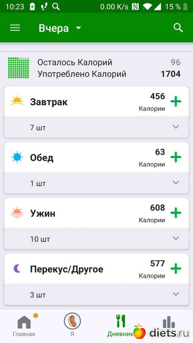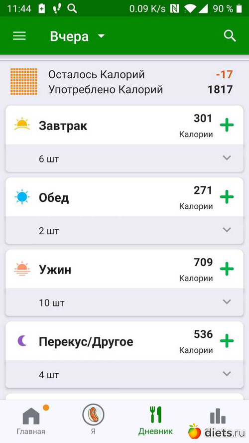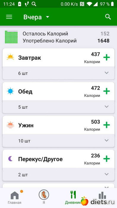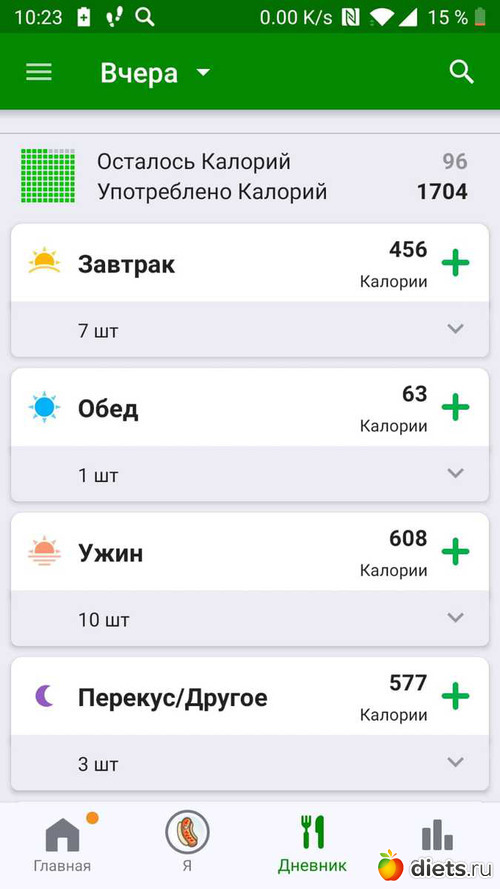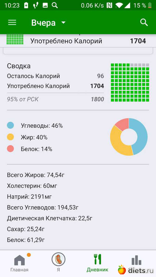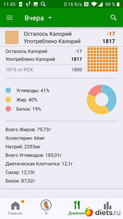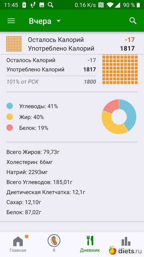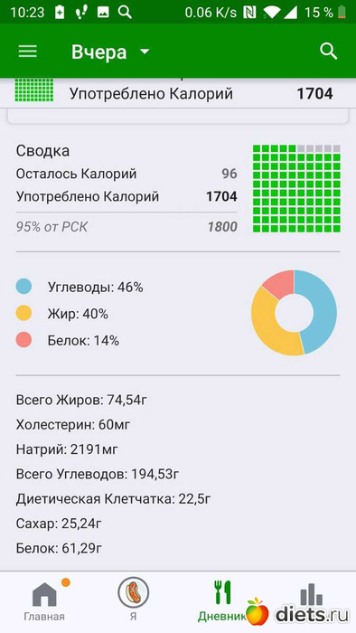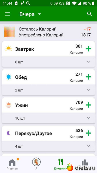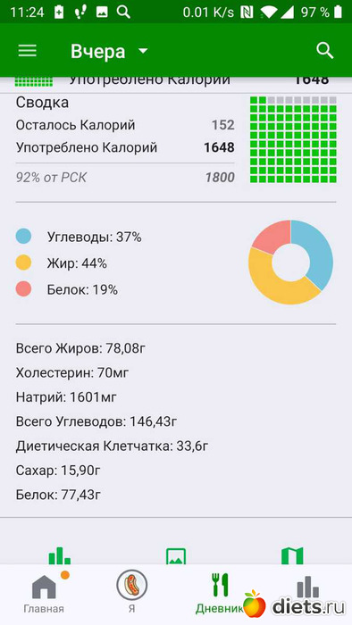 Калорийность за пятницу ниже: