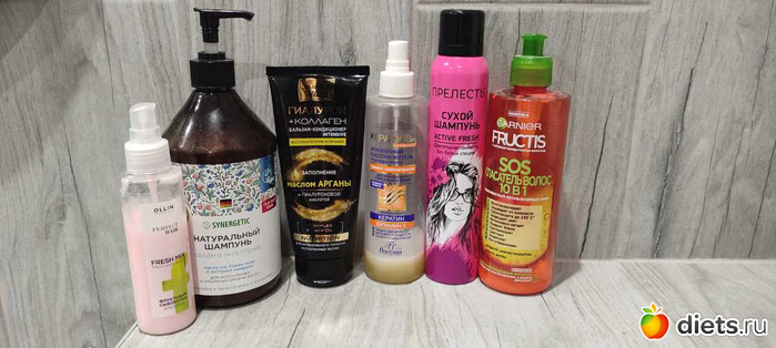 Шампунь, бальзам и пару несмывашек, но пользуюсь только розовой, те надо выкинуть стоят уже давно у меня