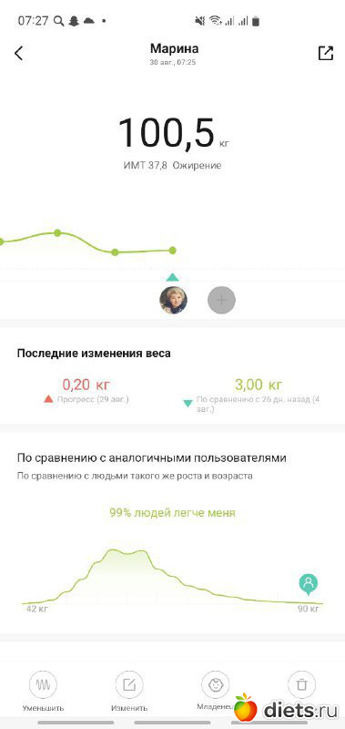 На этой неделе прибавка. (диету не соблюдала и спортом не занималась.)