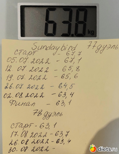 Всего скорее следующие две недели не смогу взвесить.