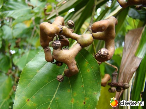 Любопытно, что конфеты на этом дереве – отнюдь не плоды. Плоды говении как раз таки не съедобны: они маленькие, костянистые. Зато прикрепляет их к стволу – плодоножка.
