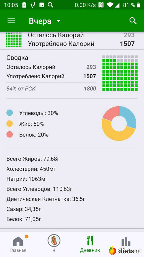 Ела много кажется, но уложилась в свой дефицит и даже осталось немного на запас