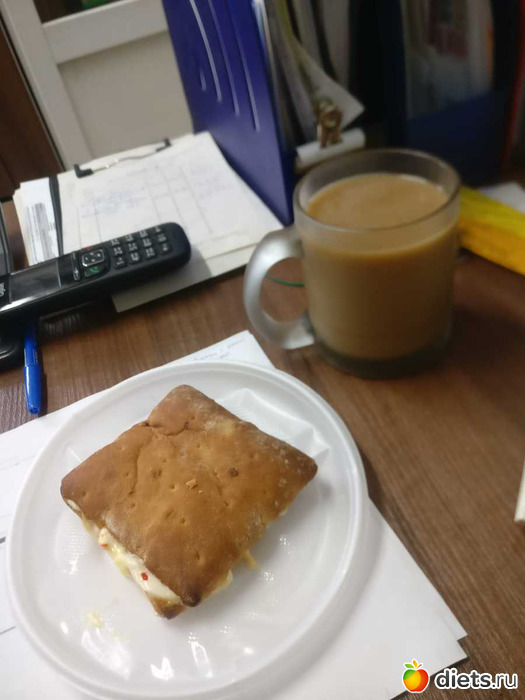 Завтрак: как обычно. Сэндвич + кофе б/с со сливками + 1 зефирка