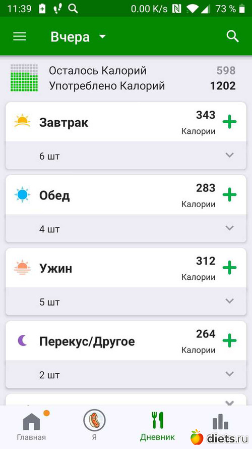 Калорийность за вчера: