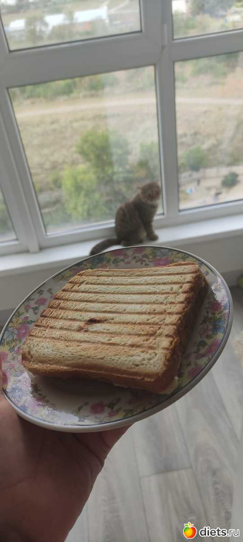 Завтрак: сэндвич с тремя сырами + соленый огурец внутри, торт всего 50 грамм + кофе