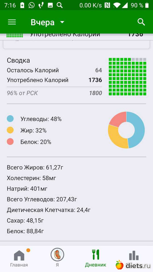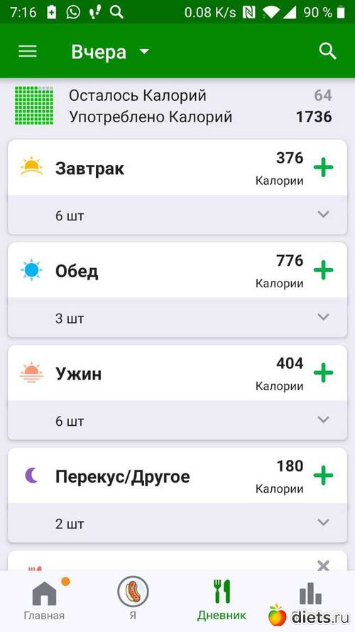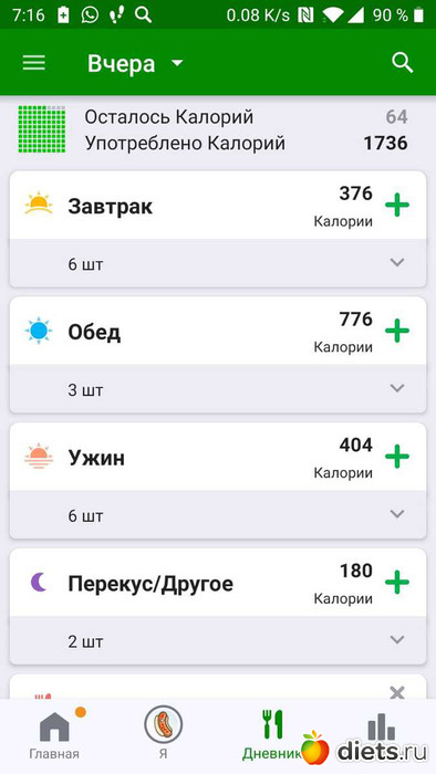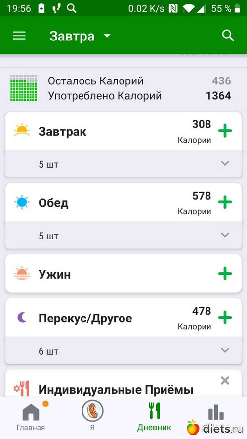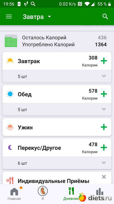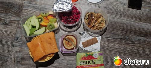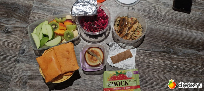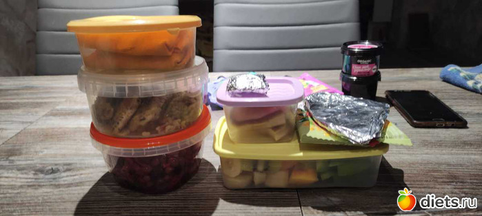 И калорийность еды на работу, тут у меня завтрак, обед и два перекуса