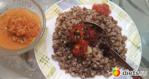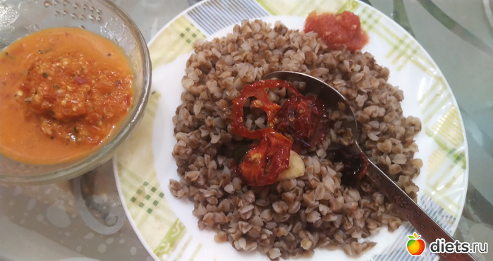 На фотке мой сегодняшний ланч. Стараюсь побольше хороший углеводов есть, сил поприбавить чтоб... Вот 150 г - вареная греча и сусы - остренький и томатный - самодельные. Немного выленых томатов еще... Забываю иногда про вот эту важную еду - ланч- после завтрака. Но буду стараться помнить. Читать полностью