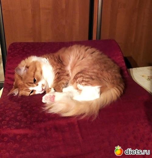 Рыжий отжал у меня ножную подушку. Лежит, меня контролирует