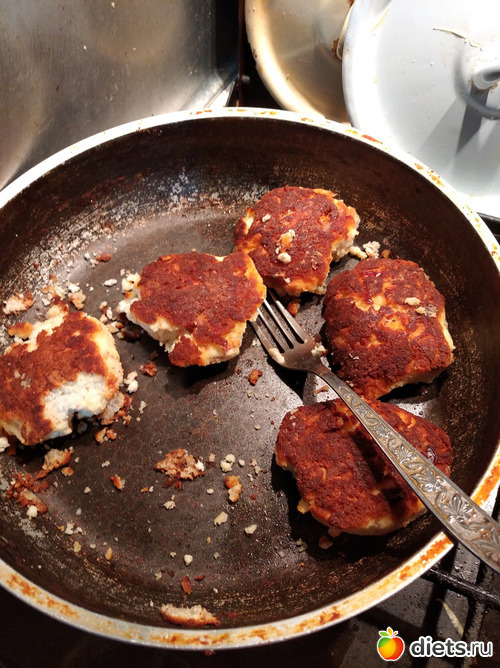 Творог в котлетах не чувствуется, вкусные вышли. Надо попробовать испечь сырники с кокосовой мукой. Можно в духовке. Яблок ещё туда натереть... Если не заленюсь... Есть хочется, худеть хочется(с.)