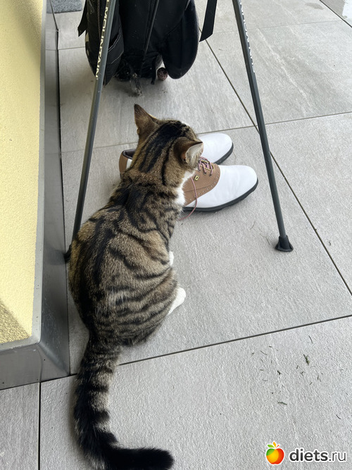 Котя потом обиделся, ушёл на час под бельевую сушилку, только за палочкой мясной вылез