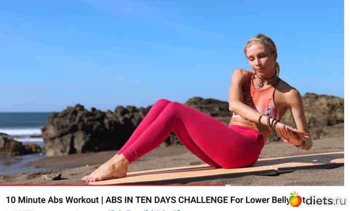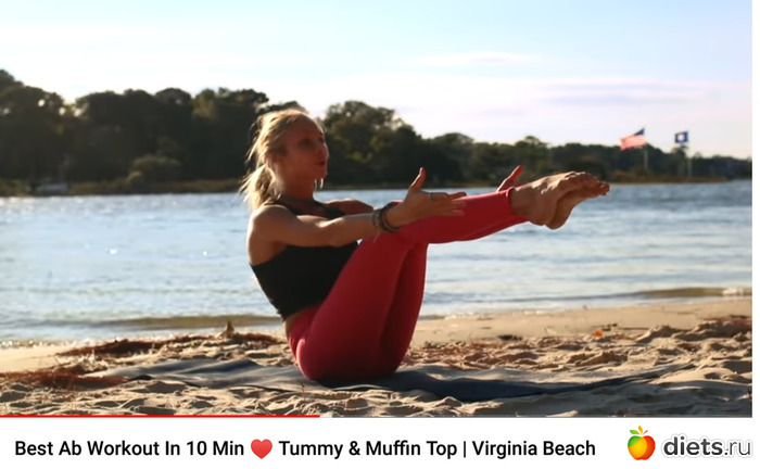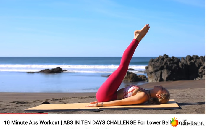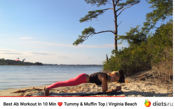 Упражнения велосипед, ножницы, скручиваний много. Дополняют тренировку музыка приятная и шикарный песочный пляж!