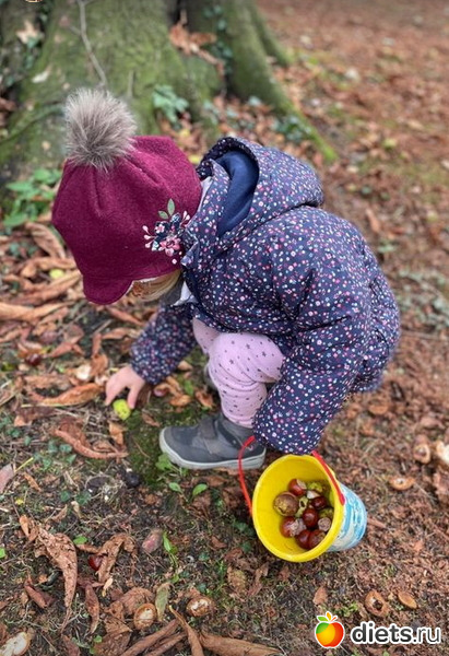 Mладшая внучка собирает каштаны... Дети любят, на свежем воздухе, всей семьёй. Что нибудь будут мастерить из каштанов.
