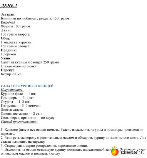 Чтобы были отвесы, предпочтение отдать воде, а не чаю и кофе. Белок с овощами.