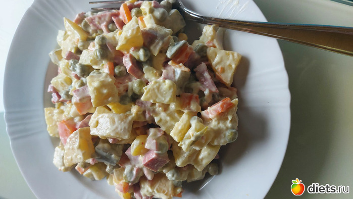 Салат по типу Оливье. Заправка - сметана 12 %