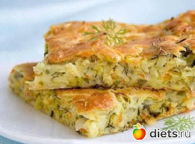 Для теста: — 2 яйца — 1/2 ч. л. соли — 1 стакан муки — 1 стакан кефира — 1 ч. л. соды.
