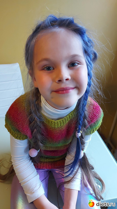 Особенно на дочку понравились изделия. А почему она сиреневую жилетку не носила? Цвет красивый
