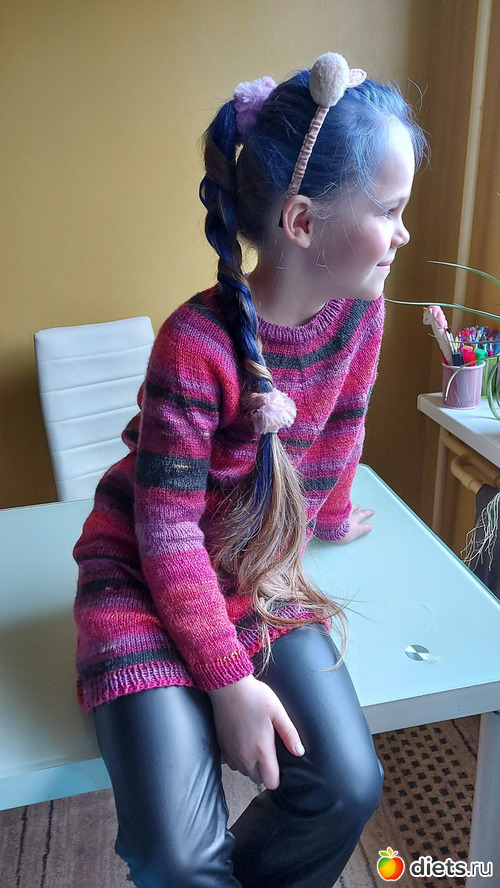В какой-то момент доча взбрыкнулась, что мол всё братику да братику, свяжи что-нибудь мне. Отвлеклась на несколько изделий для нее