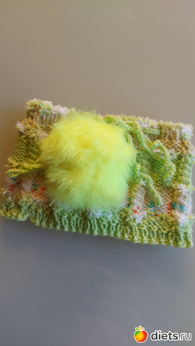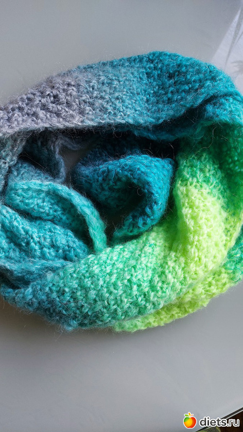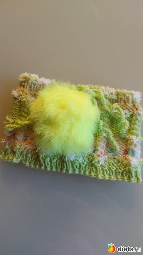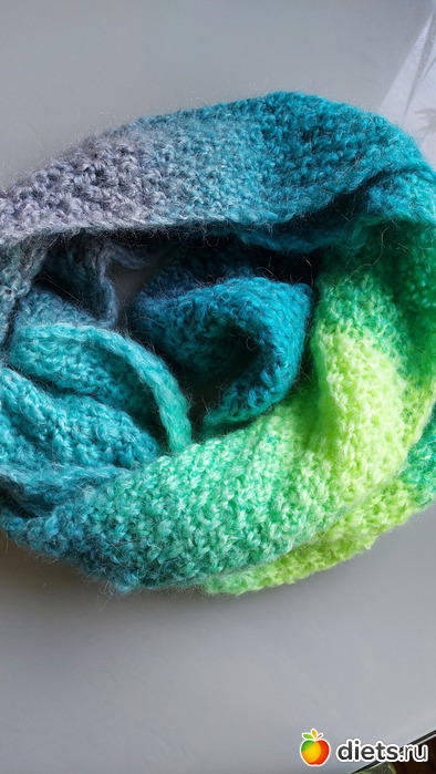 Дочка попросила снуд с помпоном. Не помню уже, где подсмотрели идейку. Пряжа - остатки какие-то. Модель не очень удачная, помпон не дает поместить всю конструкцию под куртку