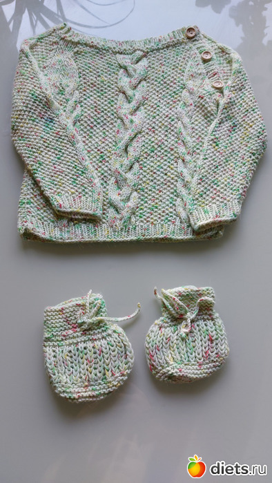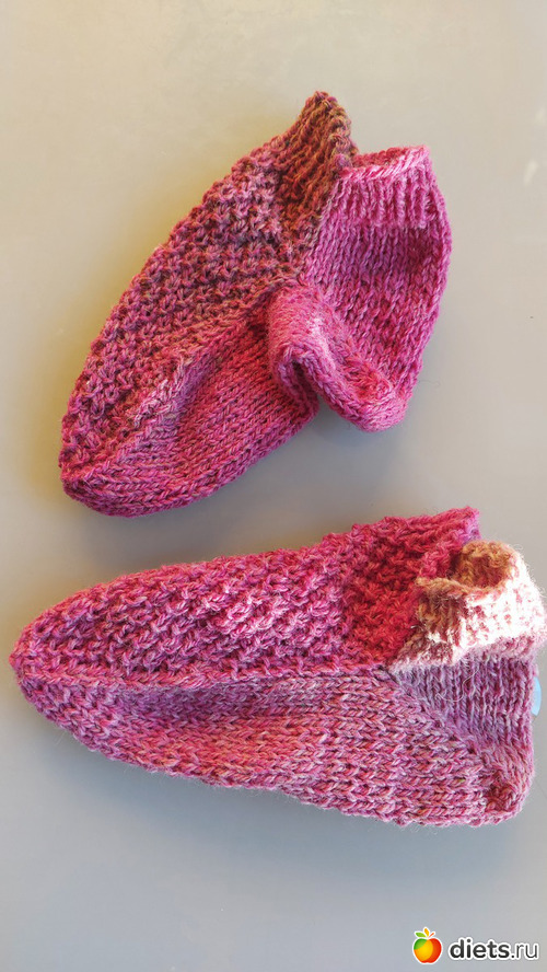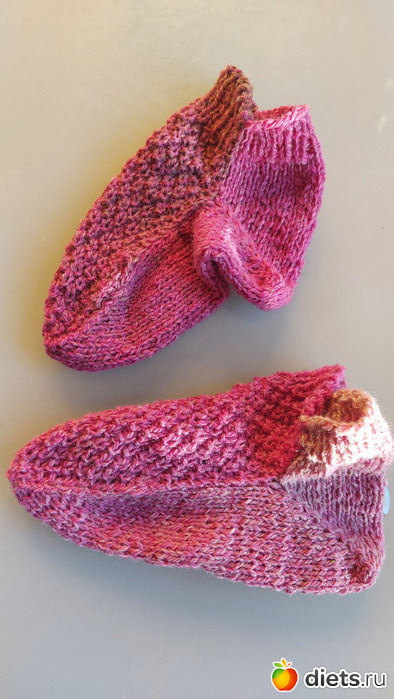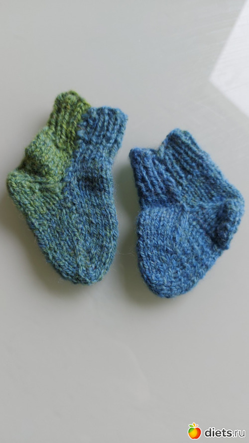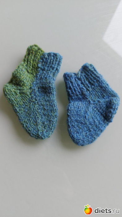 Во-первых, связала носочки в роддом. У нас новорожденным сразу одевают носочки из грубой деревенской шерсти на голые ножки, и носить их надо первые 3 месяца (даже летом)