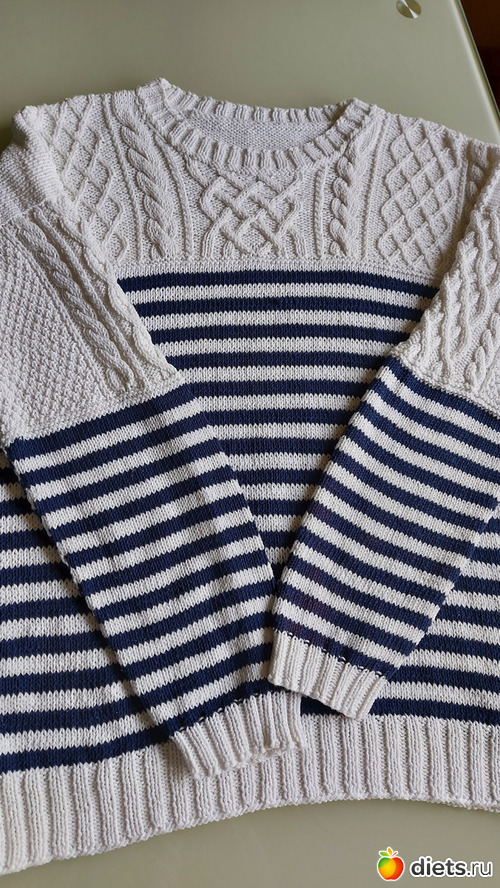 Весной у меня возникла идея фикс - навязать кучу маринистических джемперов. Напокупала пряжи, отобрала идей... и в итоге связала только 2 изделия