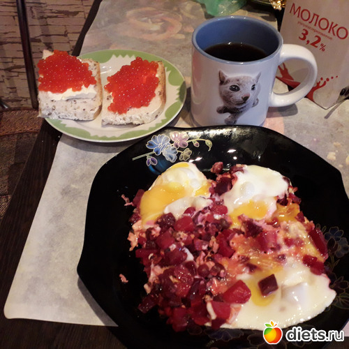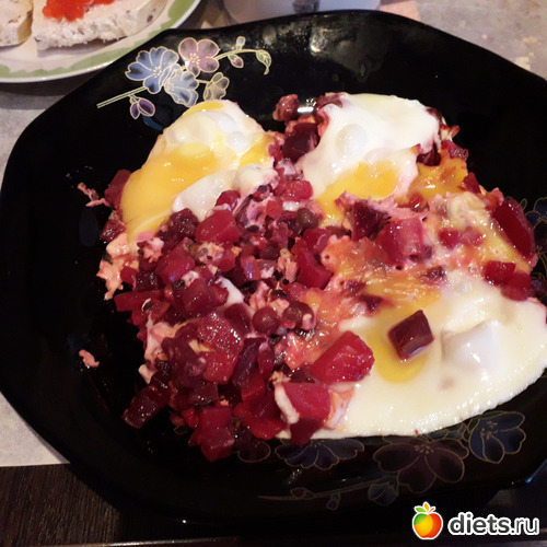-со свеклой, морковкой, горошком-осталось от приготовления винегрета.