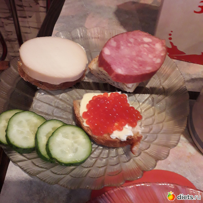 (Какого размера бутерброды-для сравнения положила кусочек огурца)