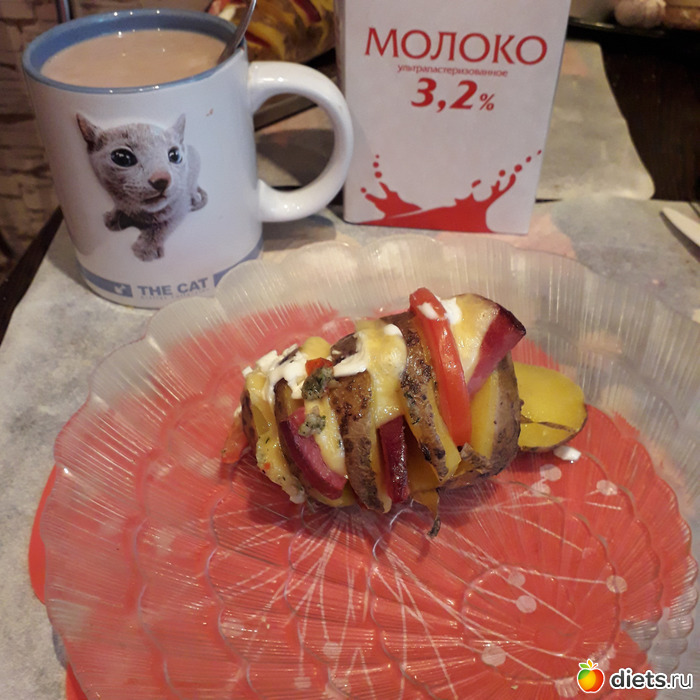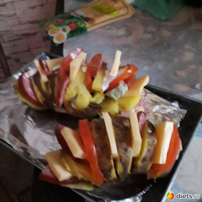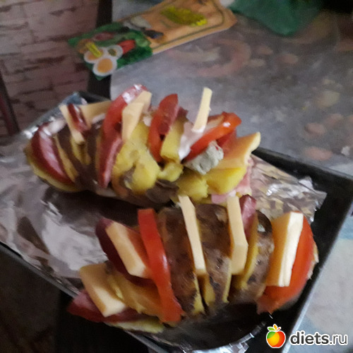 Я -раньше,как и ты-запекала в фольге.Уходило минут40.Теперь я это делаю-варю картошку в мундире,надрезаю,фарширую-так сказать и ставлю под верхний гриль,или просто в духовку.У меня есть еще мини-духовка-вот поддончик алюминиевый из нее.Раньше это называли-ростером-для горячих бутербродов,сейчас-мини-духовочка!