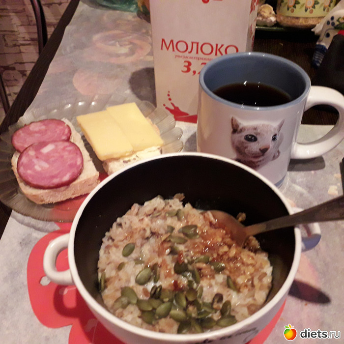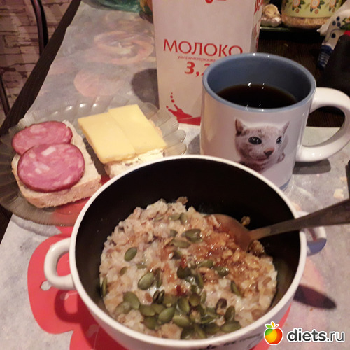 -Каша 5 злаков-на воде, с медом и с тыквенными семечками