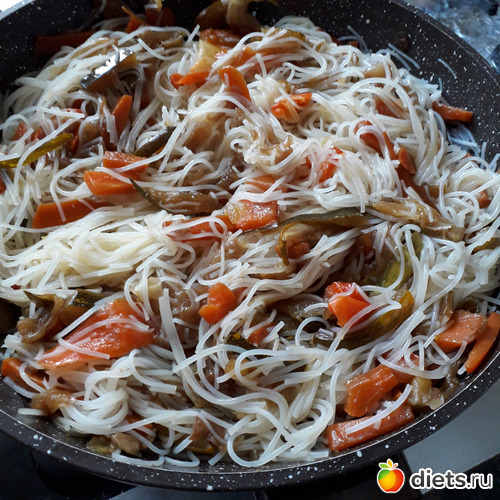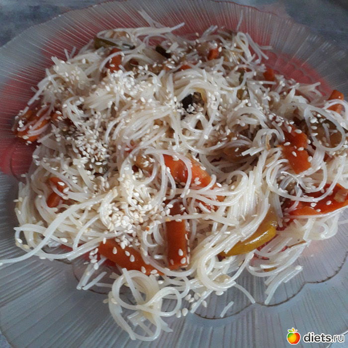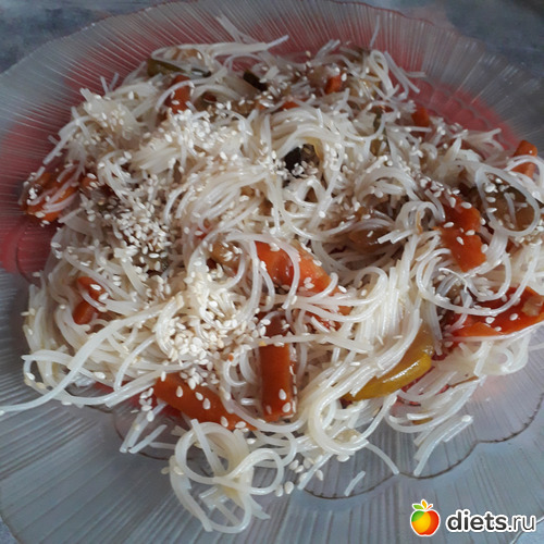 -Фунчоза с овощами, с соевым соусом и кунжутом