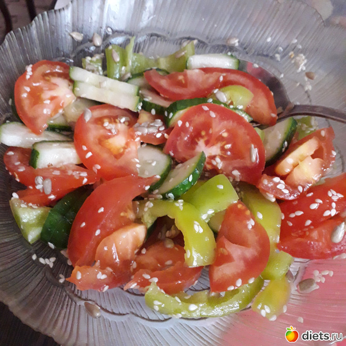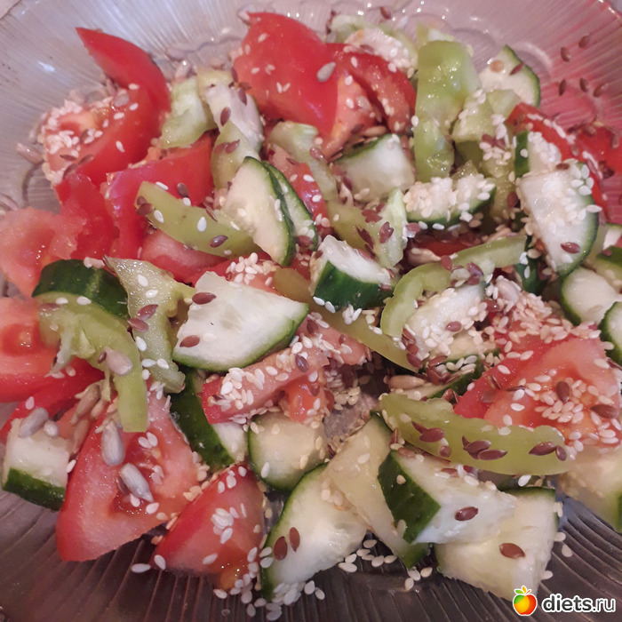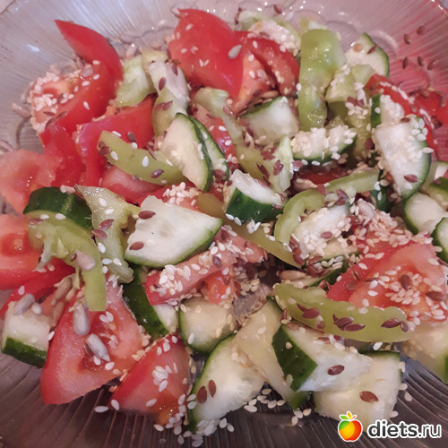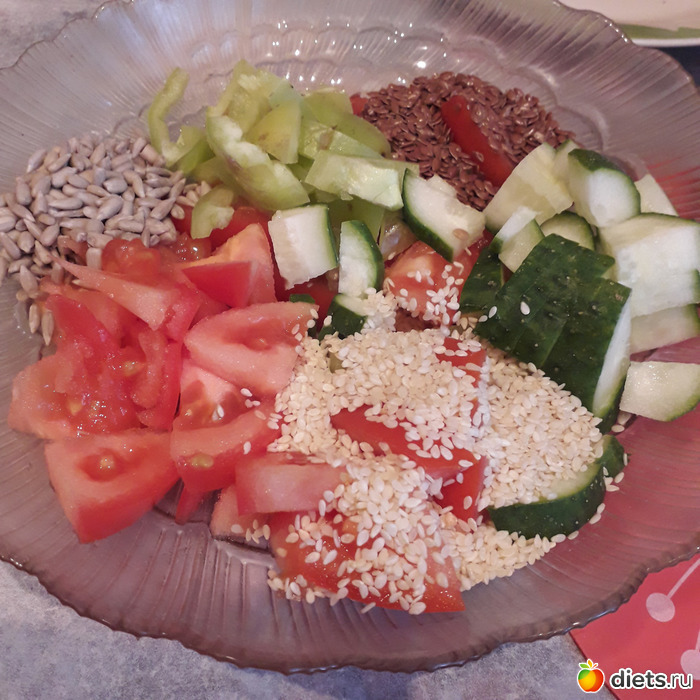 -Овощные салатики в обед-с кунжутом, подсолнечными семечками, льняным семенем и ароматным подсолнечным маслом