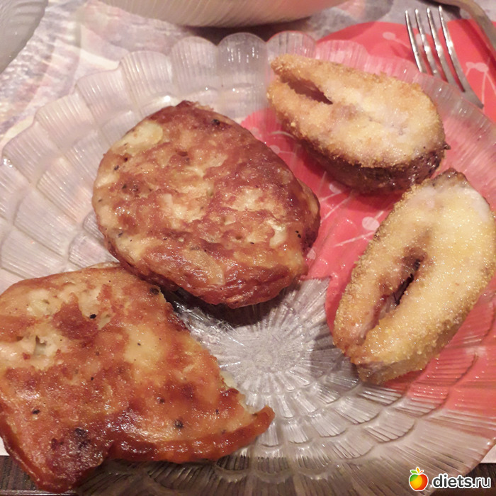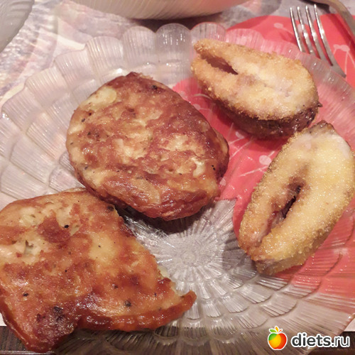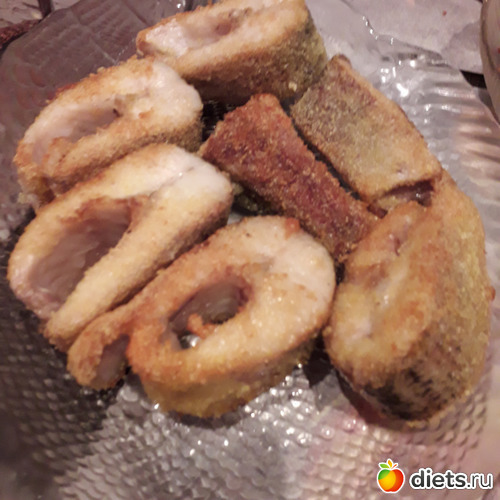 Я щуку сей раз панировала в кукурузной манке.Вообще-панирую не только в сухарях-муке,но и в отдельных крупах!!Панировку насыпаю в п/пакет-и туда то,что надо запанировать!Тогда панировки маленький слой-не как в магазинной панировке! Они ведь для веса забивают продукт панировкой-сам сделаешь иначе всегда!Был у меня тут в группе пост о панировке продуктов! Опять же мыть лишнюю тарелку не надо-пакет в мусор!