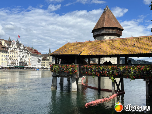 На фото не замок, а только башня, раньше как тюрьма, а также камера для допросов и пыток и мост полностью деревянный, соединяющий две части города через реку. Горел не один раз, последний в 1993 году: