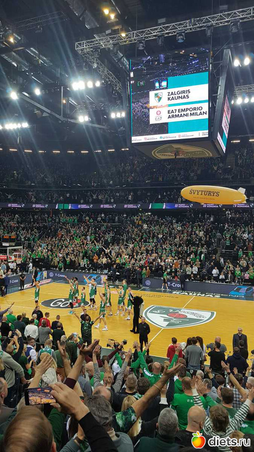 Вечером они с мужем ходили на баскетбол. Какой-то важный матч, все билеты были распроданы (муж на работе получил бесплатно). Играли Каунасский Жальгирис и Миланский Armani Exchange. Каунас выиграл