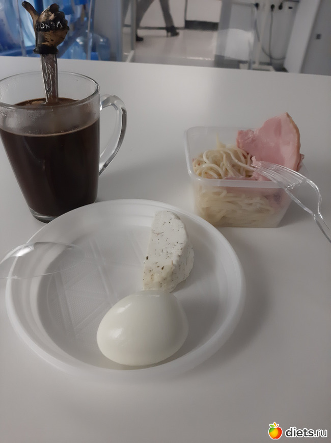 спагетти, ветчина, яйцо, сыр адыгейский, кофе