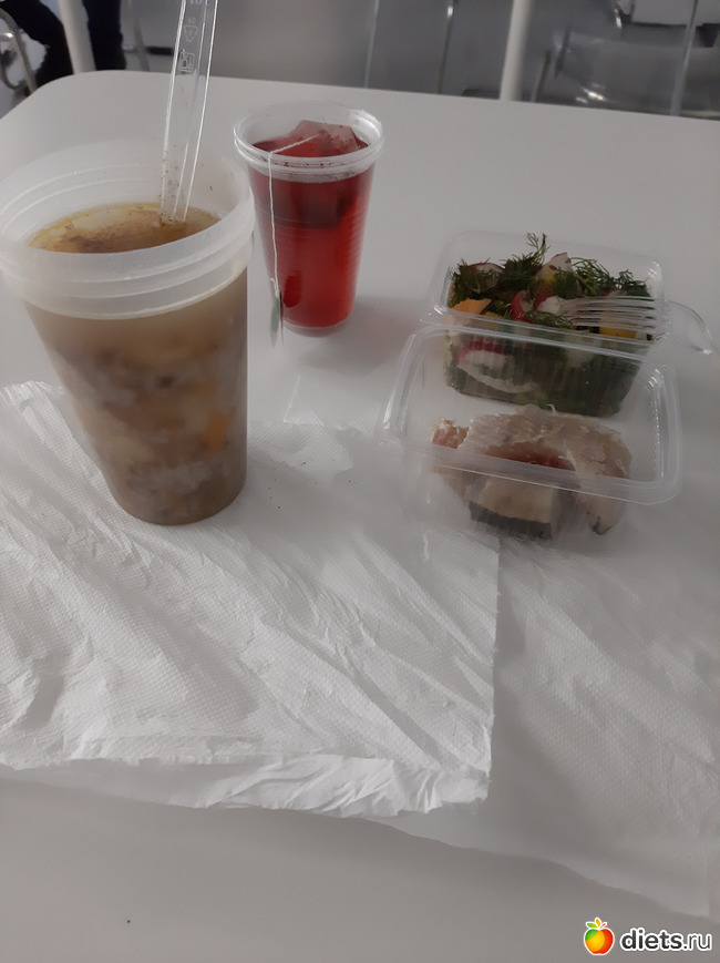 суп гречневый с говядиной, щёкур малосольный, салат овощной с мидиями, чай травяной