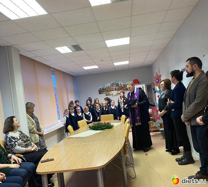 На фото директор школы зажигает свечу, пастор из костела, к которому относится школа, читает молитвы, или что там делают по этому поводу, я не спец