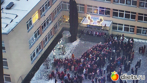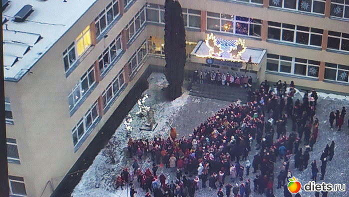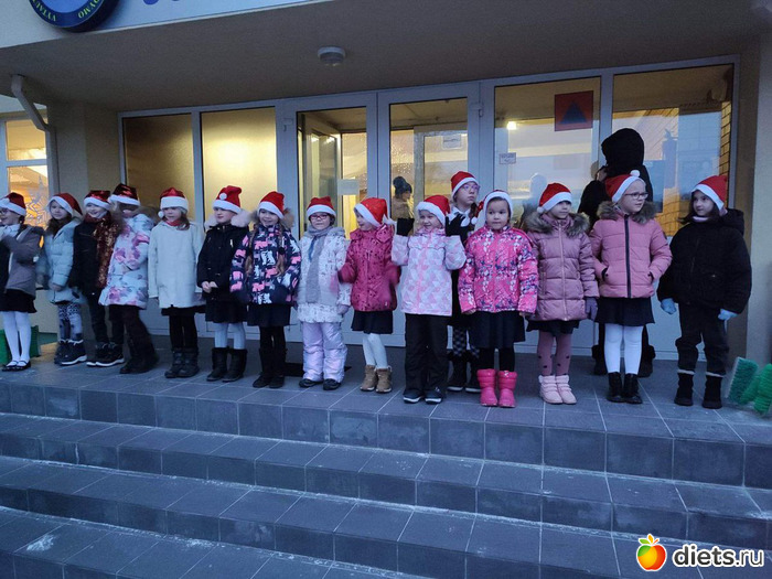 Хористки встречают на пороге школы всех входящих рождественскими хоралами