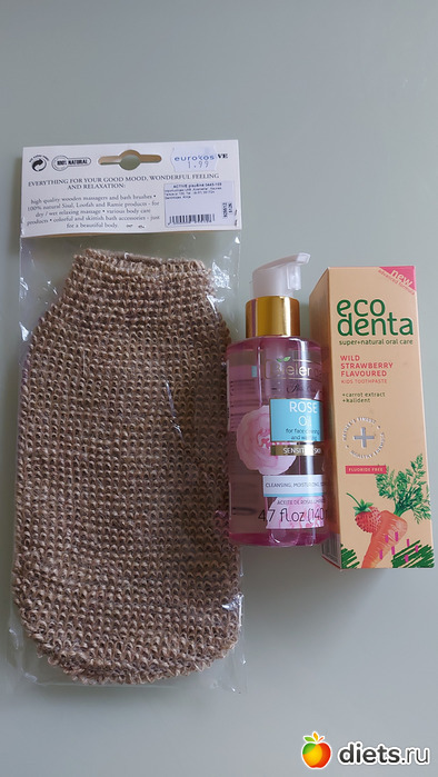 Я сходила до косметического сетевика и купила пару мелочей: мочалка в виде жесткой варежки, умывалка моей любимой польской марки Bielenda, зубная паста дочке
