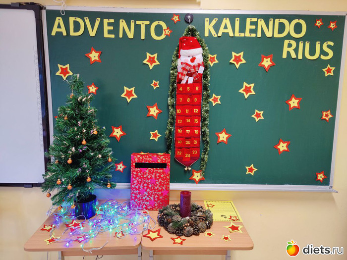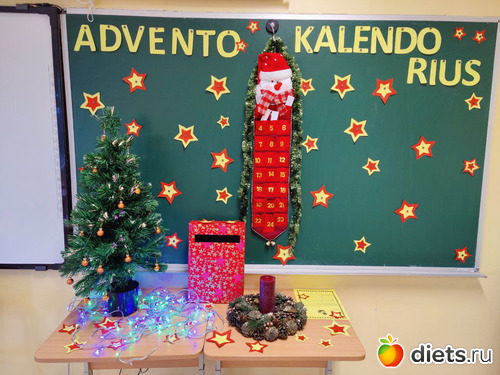 В классе у дочки тоже есть адвент-календарь, с заданиями и добрыми делами. Каждый день кто-то из учеников открывает соответствующее окошко, читает задание, а выполнять его надо всем индивидуально. Например, сказать кому-то комплимент, помочь маме, позвонить бабушке, убраться в своей комнате, поблагодарить кого-нибудь и тд