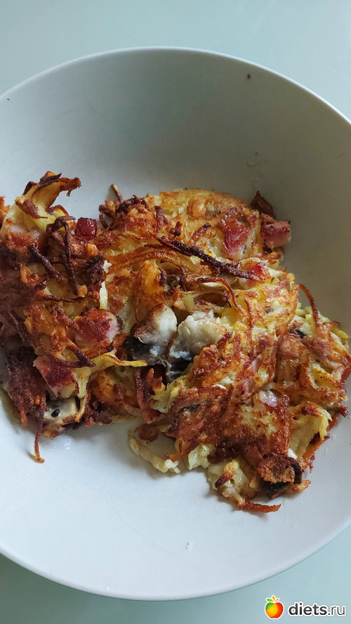 Еще одни драники, в составе теста картошка, копченый бок, сыр, шампиньоны; часть запекала в духовке, часть жарила на масле. Вкуснейшие