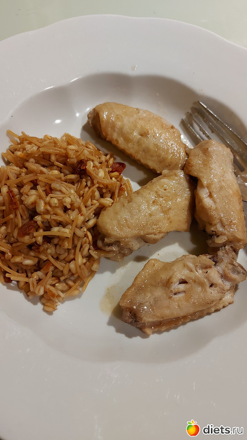 Тушеные крылышки с крупой, крупа интересная: перловка+вермишель+сушеные помидоры (готовый магазинный микс, Польша)