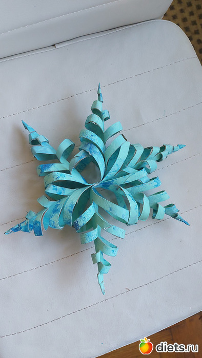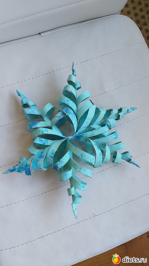 Сделали с дочкой снежинку из 6 втулок от туалетной бумаги