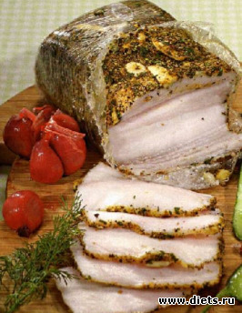 Сало заворчиваем в пищевую пленку. Лучше в холщовую салфетку и кладем в холодильник на 2 суток.