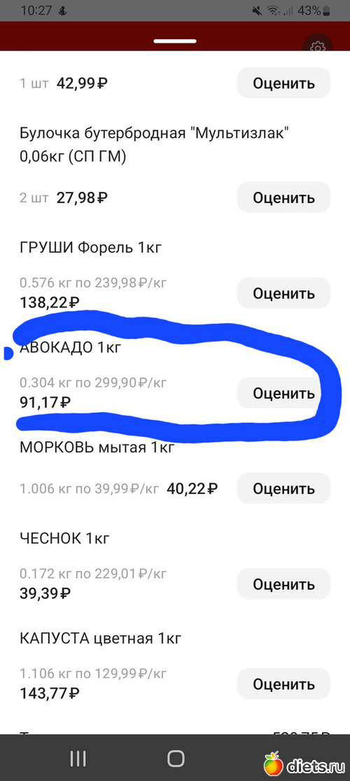 Крупный фрукт ты выбрала, я свой взвесила 218 грамм.