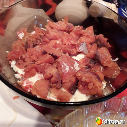 Я еще люблю семгу под шубой (все то же, как в обычной, но вместо селедки - красная соленая рыбка).
