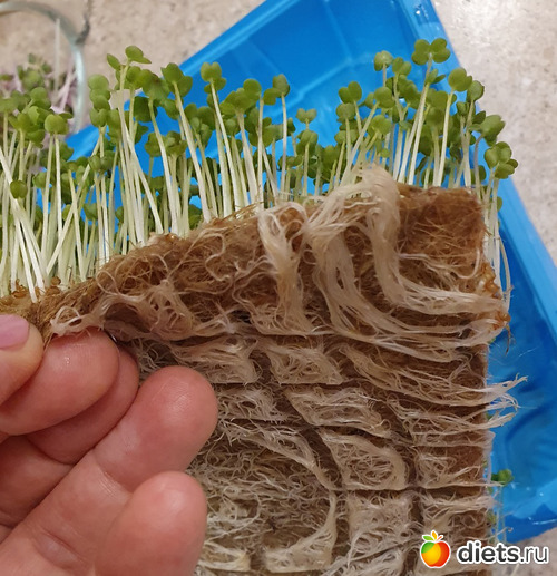 Вот какие корешочки отрастают! Зелень срезается и потом из них уже ничего не растет. Надо снова сеять.