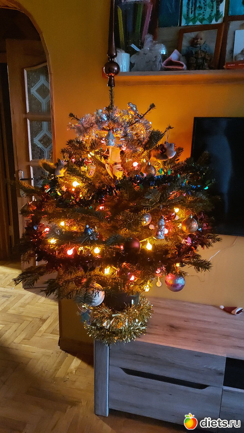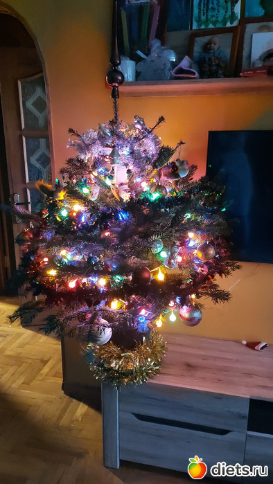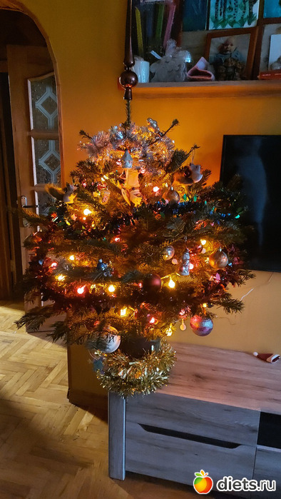 Муж съездил за ёлкой, вдвоем с дочкой они ее украсили